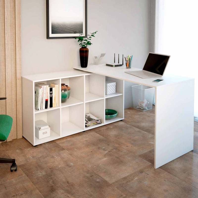 Escritorio en L Nero Bertolini •MDF y MDP •8 Amplios espacios para almacenar. •Pintura texturizada de alta calidad. •En Forma de L, se puede armar hacia el lado derecho o lado izquierdo. •Producto Desarmado. •Incluye manual de armado y tornillería necesaria. •Medidas: Alto: 75cm Ancho: 140cm Profundidad: 130cm Espesor: 15mm Optimiza sus espacios de la mejor manera posible dando un toque elegante y sofisticado con el Escritorio Nero, en forma de L, cuenta con ocho amplios compartimientos y espacio para trabajar, Se puede armar para el lado izquierdo o derecho. GARANTÍA: 3 meses. El tono de la imagen puede tener alguna variación leve.
