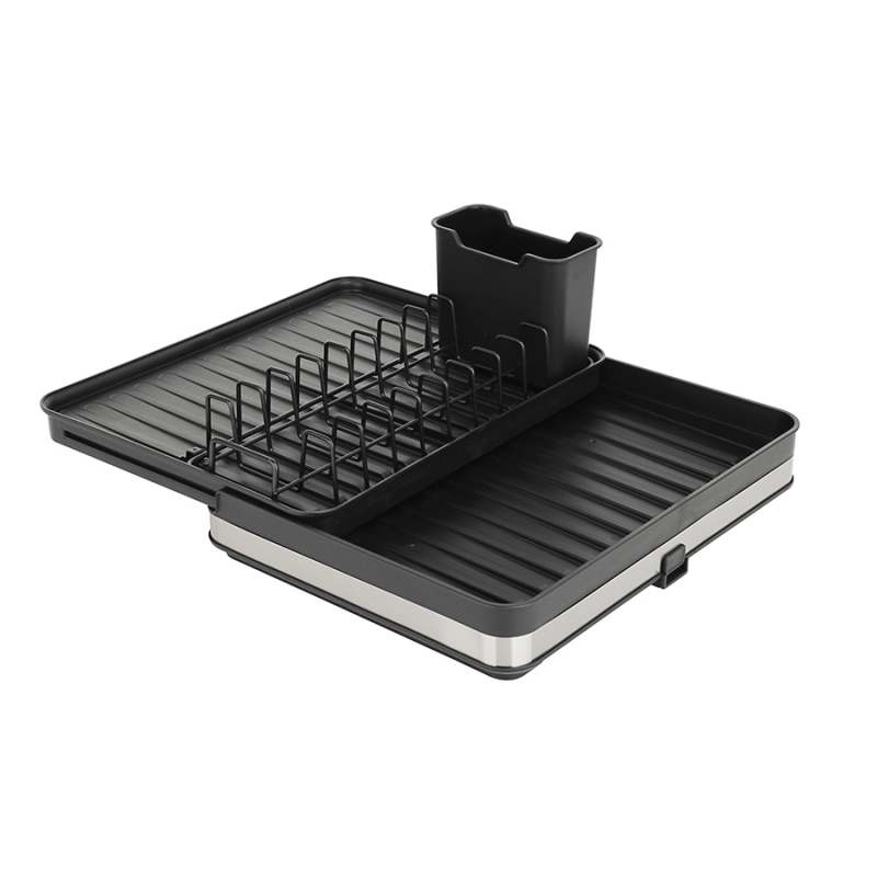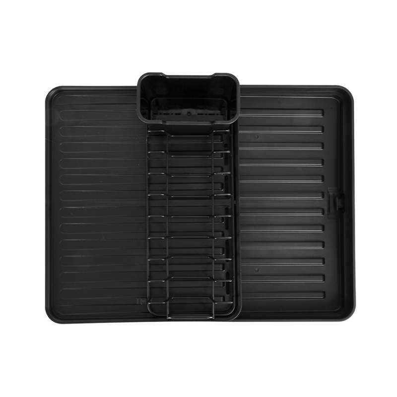 Escurridor de Platos, 13X30X37 Color negro, con compartimiento para cubiertos y utensilios, rejillas para platos y ranuras, practico y extensible. En Materiales hierro - polipropileno. Ideal optimizar espacio y orden en tú cocina.