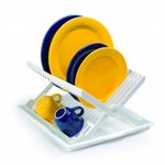 Escurreplatos en forma de tijera color blanco + bandeja, inferior en plastico, en plastico. Medidas: 37 X 33 X 21 CM, Facil de armar.