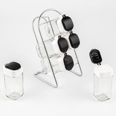 Set De 6 Especieros En Vidrio Con Base Metálica En Orientación Vertical La Tapa Se Abre Completamente Para Rociar Sin Obstáculos La Especia Que Elijas. Perfecto Para Sal, Pimienta, Canela Y Otros Condimentos. • Operación Simple Con Un Pulgar. • La Tapa Se Sella Herméticamente Cuando Está Cerrada. • Funcionamiento Exclusivo De Resorte De Goma. 86752002