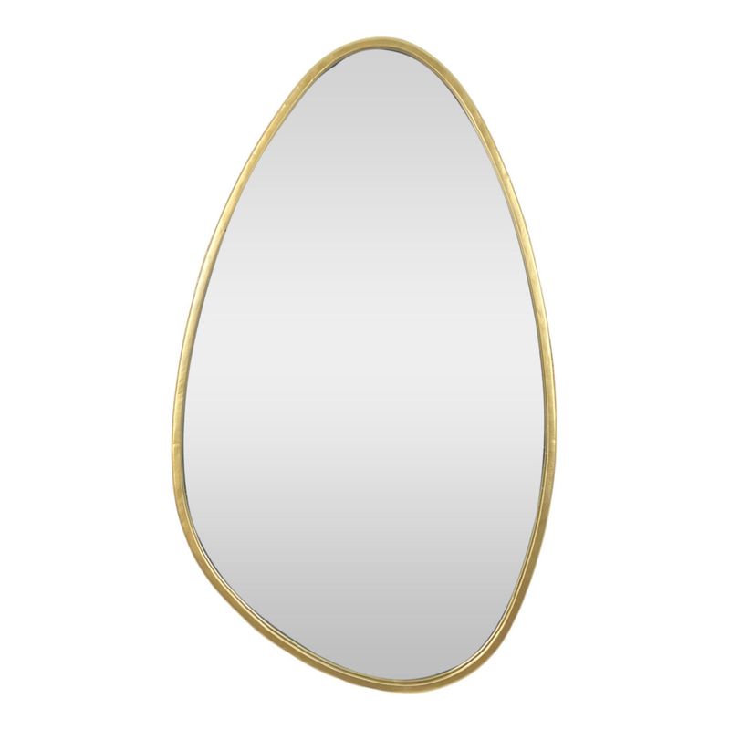 Espejo Gota en vidrio con marco en hierro color dorado, medidas 56x76 cm, diseño orgánico de silueta fluida que aporta ligereza visual y un acento elegante a paredes de salas, habitaciones o recibidores.
