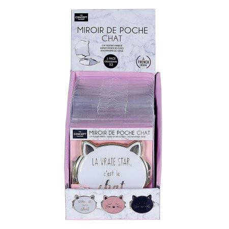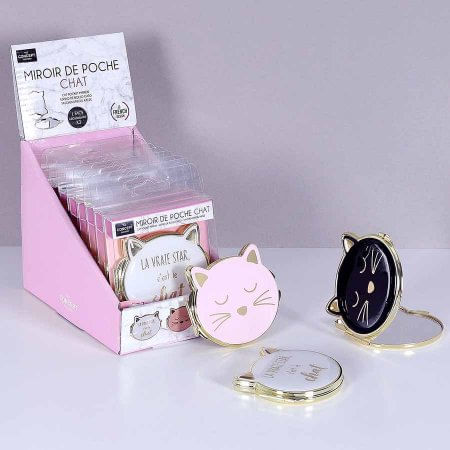 Espejo de bolsillo Gato. Colores: Surtidos. Marca: Cosmetic Club. Medidas: 7cm diametro. Los productos marcados como 'PRODUCTO SURTIDO' pueden no ser idénticos a los que aparecen publicados en las imágenes. Las imágenes son ilustrativas. Al comprar un producto identificado como producto surtido, aceptas que podrás recibir un producto con características y atributos tangibles diferentes a los que aparecen en las imágenes del sitio o la publicidad. Los productos surtidos mantendrán las propiedades físicas, químicas y técnicas necesarias para su funcionamiento y uso de acuerdo a su naturaleza.