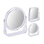 Espejo doble cara. Marca: Eleganza. Formas: cuadrado y redondo. Medidas: 12,5x13,5cm. Atributos adicionales: un lado es 2x de aumento. Los productos marcados como 'PRODUCTO SURTIDO' pueden no ser idénticos a los que aparecen publicados en las imágenes. Las imágenes son ilustrativas. Al comprar un producto identificado como producto surtido, aceptas que podrás recibir un producto con características y atributos tangibles diferentes a los que aparecen en las imágenes del sitio o la publicidad. Los productos surtidos mantendrán las propiedades físicas, químicas y técnicas necesarias para su funcionamiento y uso de acuerdo a su naturaleza.