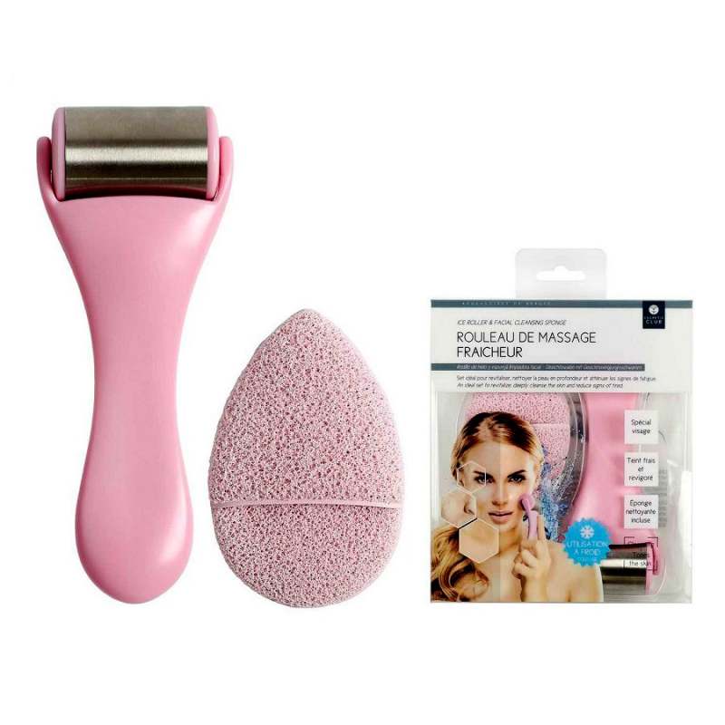 Esponja de limpieza facial y masajeador de hielo. Marca: cosmetic club. Medidas: 18,5x3,7x15,6cm. Material: Acero inoxidable y Plástico. Color: Rosa. Limpia tu rostro y calma las rojeces con este 2 en 1 - Punta de esponja limpiadora - Punta masajeadora de hielo - Composición de acero inoxidable.