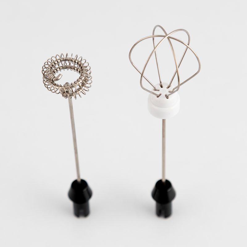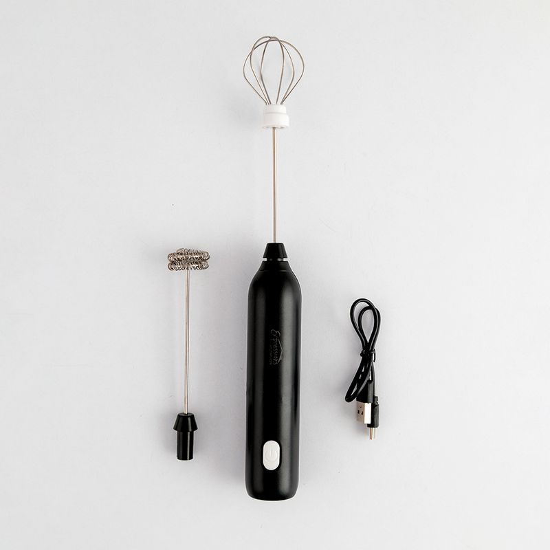 Espumador de leche en color negro, cuenta con un sistema de 3 niveles de velocidad (bajo, mediano y fuerte) que permite un control total sobre la potencia del batido según la preparación requerida. Su diseño versátil incluye cabezales metálicos intercambiables que se adaptan a diferentes preparaciones, desde espumas ligeras hasta más densas. Fabricado con un mango ergonómico de plástico ABS, es la herramienta definitiva para lograr acabados profesionales en cafés, capuchinos y demas preparaciones con gran rapidez y precisión.