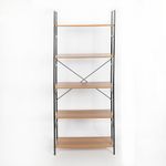 Estantería de diseño industrial en madera y acero, dimensiones 60x152x28 cm. Estructura resistente, entrepaños abiertos, ideal para organización y decoración de libros y objetos. Uso en sala, estudio u oficina, diseño moderno, funcional y compacto.