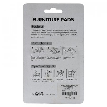 Set de 18 fieltros autoadhesivos, Color gris, Las almohadillas protegen las superficies delicadas de los arañazos y las abolladuras, Se adhieren permanentemente a la madera, metal, lamima, cerámica, puv, goma y otras superficies lisas, Practicos, Faciles de instalar, Suaves al tacto, Elaborados en China.