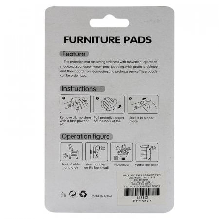 Set de dos fieltros autoadhesivos con un diseño moderno de forma cuadrada. Estos protegen las superficies delicadas y evitan el desgaste por rayado y la abolladura de mueble. Además, se adhiere permanentemente a la madera laminada de caucho, cerámica, metal y otras superficies. Cuenta con adherencia con la operación conveniente a prueba de golpes insonorización desgaste, encorvamiento. Este producto prolonga la vida útil de los muebles.