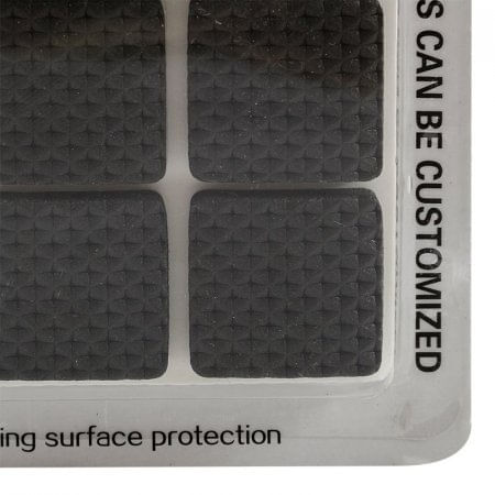 Set de dieciocho fieltros autoadhesivos color negro, Forma cuadrada, Protegen las superficies delicadas, Evitan el desgaste por rayado y la abolladura de muebles, Se adhieren permanentemente a la madera laminada de caucho, cerámica, metal y otras superficies, Tienen adherencia con la operación conveniente a prueba de golpes insonorización desgaste, encorvamiento, Prolongan la vida util de los muebles, Elaborados en China.