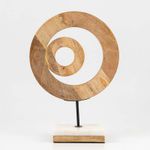 Figura decorativa de diseño geométrico en madera, elaborada con técnicas de corte de precisión y acabado pulido, ideal para espacios elegantes y modernos.