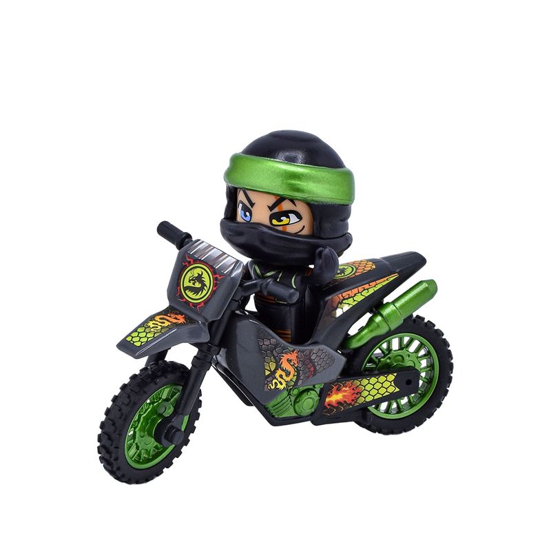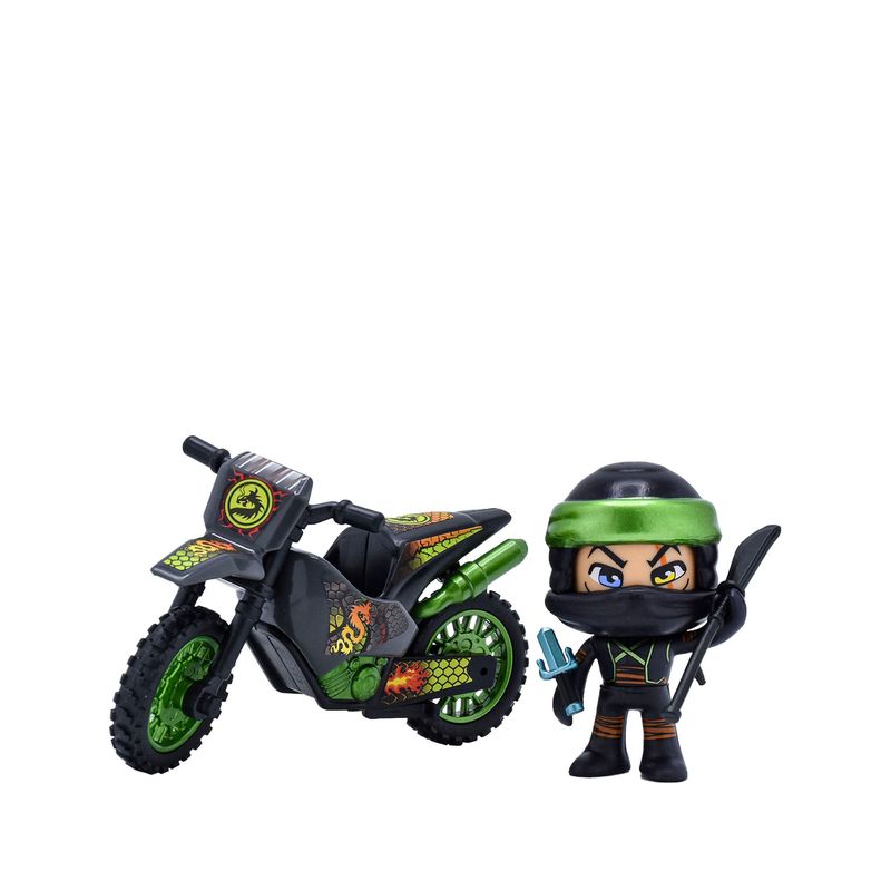 Con la serie Pinypon Action descubre las aventuras Ninja y deja que empiece la acción. Esta figura Ninja Demon incluye una moto decorada a juego con su traje. Tiene cara doble de ninja y demonio, cuerpo intercambiable y 4 accesorios de armas ninjas. Las figuras Pinypon son Pop & Swap y se pueden intercambiar las partes del cuerpo entre sí y con el resto de figuras de Pinypon y hacer infinitas combinaciones.