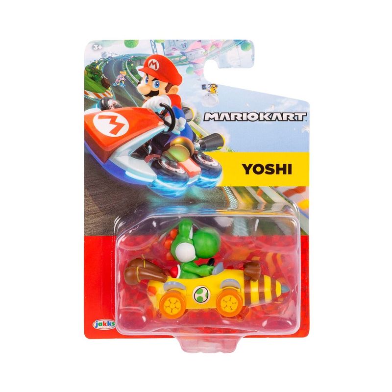 El vehículo coleccionable Kart Racers de Yoshi lleva la emoción de Mario Kart al juego diario con un formato compacto y fácil de manipular. Incorpora ruedas móviles para desplazamiento manual y un diseño inspirado en los vehículos y personajes del videojuego, ideal para recrear carreras, escenas y momentos de colección. Su acabado detallado favorece el juego de rol y la exhibición en espacios pequeños. Recomendado para 3 años en adelante.