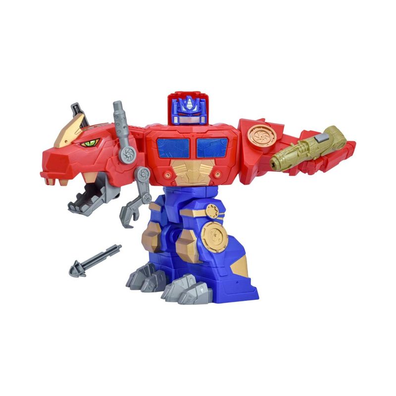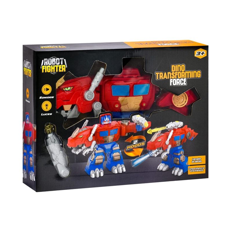 Figura de acción que se transforma entre dinosaurio y robot para vivir batallas llenas de imaginación. Incorpora lanzador de dardos, luces y sonido para amplificar la experiencia de juego y cuenta con compartimiento de almacenamiento. Desarrolla coordinación mano-ojo, resolución de problemas y juego simbólico.