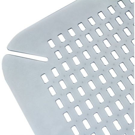 Material: Vinilo. Tapete periférico ajustable para lavado o fregadero. Permanece plano en lavados o fregaderos más grandes. Esquinas curvas con quiebre para adaptarse fácil. Orificios pequeños rectangulares.