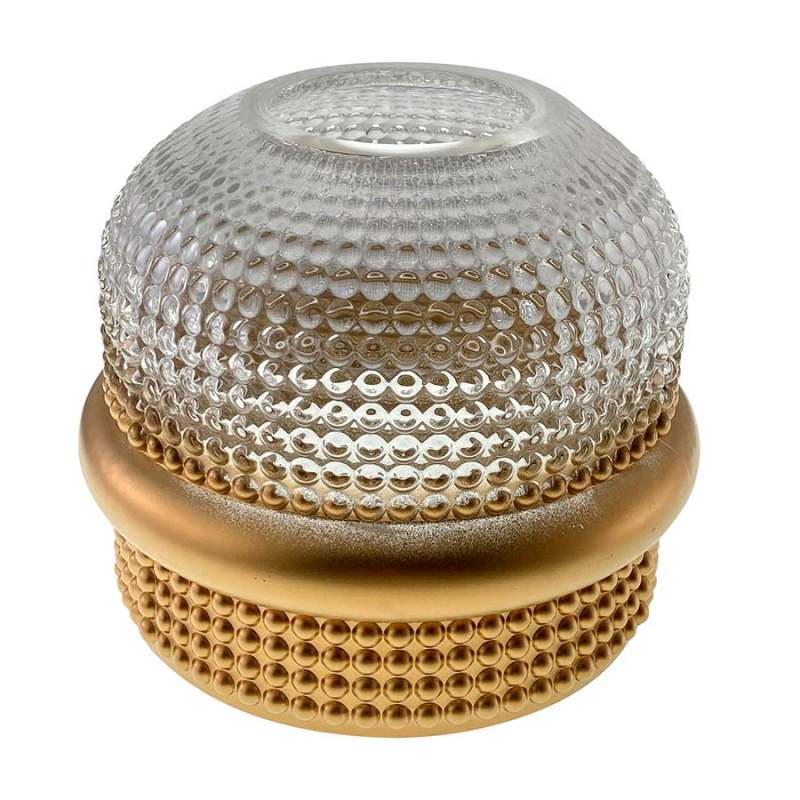 Florero Vidrio Concepts 35866 mediano Color: Transparente y dorado Alto: 19Cmts Ancho: 19Cmts Profundo: 15Cmts Material: Vidrio Colección: Argenta