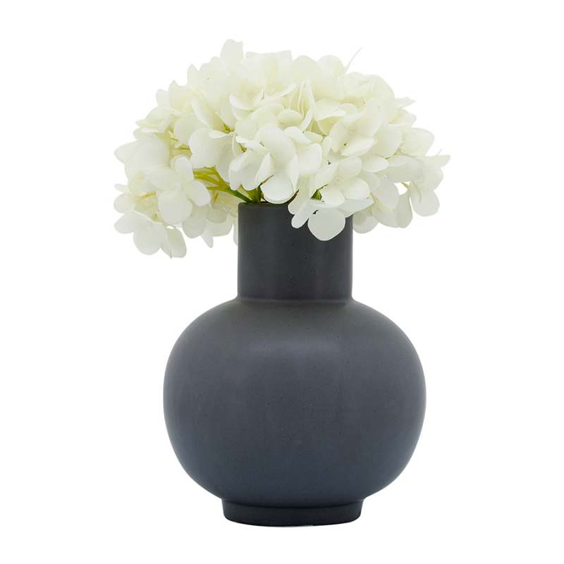 Florero decorativo modelo 17055-03 diseño inferior circular F23-1 Material: Ceramica Tamaño: 20Cms de alto Color: Gris