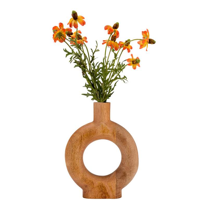 Florero decorativo modelo 17560-01 en forma de dona F23-1 Material: Madera Tamaño: 25Cms de alto Color: Café