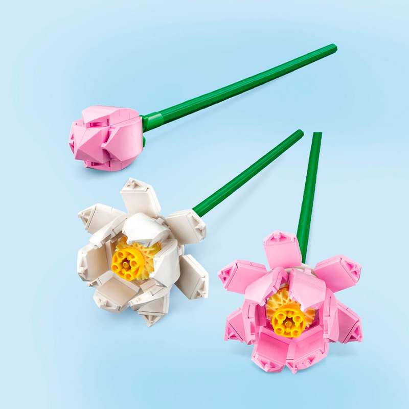 Recrea una maravilla de la naturaleza con el set de construcción LEGO® Flores de Loto (40647). Esta interpretación LEGO de una flor apreciada en todo el mundo incluye 2 lotos abiertos y uno cerrado en delicados tonos de rosa y blanco, con largos tallos verdes para colocarlos en un jarrón. Edad recomendada de uso mayor de 6 años