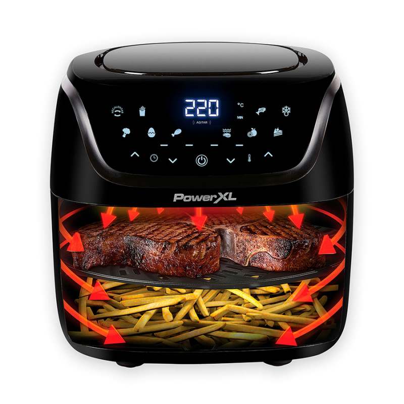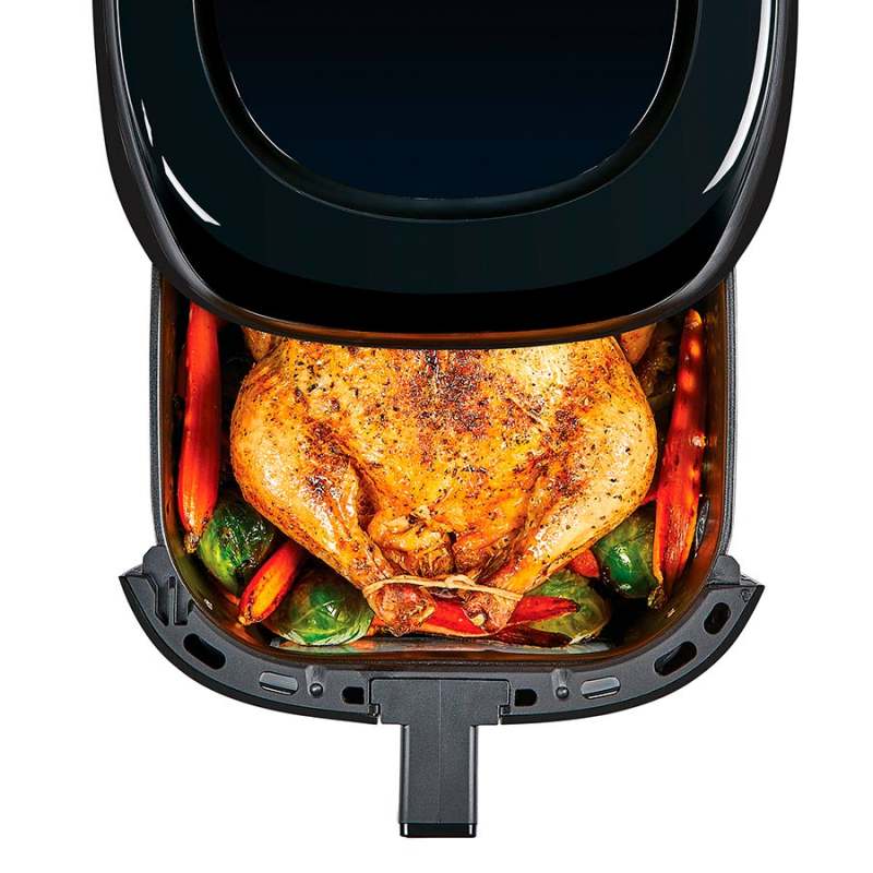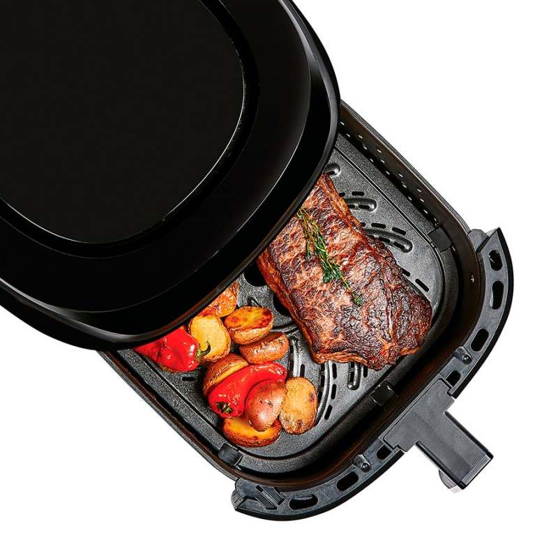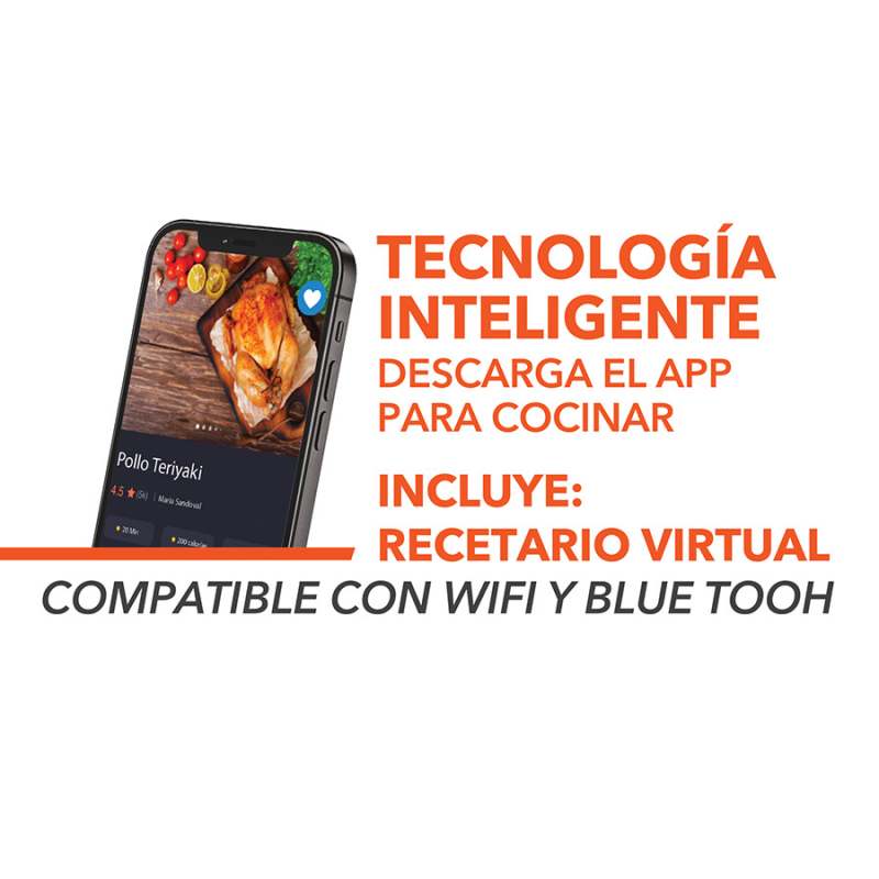 Freidora de aire para resultados deliciosamente crujientes. Controla la freidora desde tu móvil, descarga la aplicación para ajustar y seleccionar funciones de cocción, tiempo y temperatura. Obtendras recetas virtuales para una fácil cocción en un solo toque, o paso a paso. Recibirás notificación, cuando toque agitar la cesta, paraindicar cuanto tiempo queda, y cuando este listo. Con tecnología para freír con aire menos calorías, sin grasa, para un sabor crujiente sin culpa. Piezas aptas para lavavajillas con revestimiento antiadherente con 10 funciones programadas: freír con aire, asar, hornear, hervir con aire, rostizar, deshidratar, descongelar, recalentar, vegetal, pescado, con capacidad de 7.5 litrosFácil cocción en un solo toque, o paso a pasoNotificaciones:Recibirás notificación, cuando toque agitar la cesta, paraindicar cuanto tiempo queda, y cuando este listoPantalla táctil programable se ilumina cuando esta en uso7.5 litros de capacidadRecubrimiento antiadherenteBandeja para freír y asarNotificación de agitarTemporizador con apagado automático