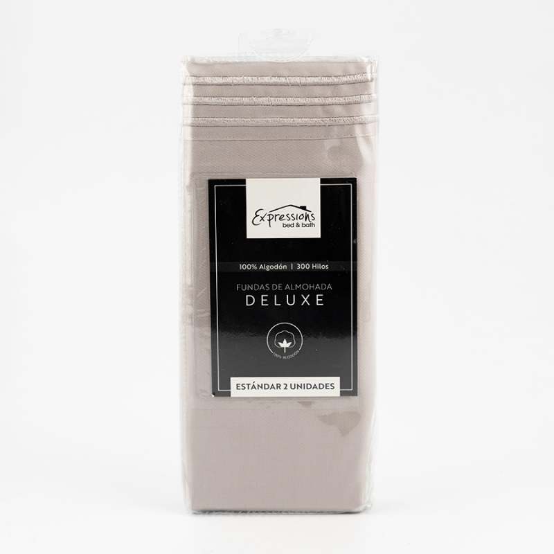 Set x 2 fundas de almohada 100% algodón 300 hilo Expressions color taupe tamaño standard, incluye: 2 fundas de almohada