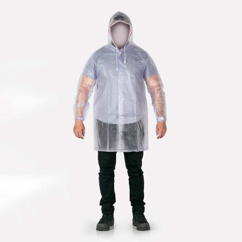 Gabardina impermeable sellada por alta frecuencia. Con capota integrada, ajuste por medio de broches y puños resortados. Pvc siliconado calibre 8. Reforzada en la zona de las axilas. Color transparente. Para uso a la intemperie. Ideal para uso casual y movilidad en bici o eléctrica.