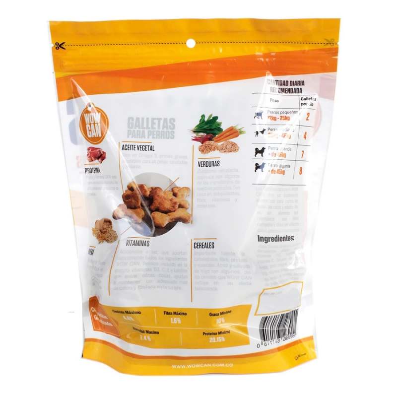 Las Galletas WOW CAN Pollo/Ternera 300g ofrecen a tu perro un delicioso snack natural y artesanal. Sus altos niveles de proteína y bajos niveles de grasa la hacen mas saludables que las galletas tradicionales. El tamaño de nuestras galletas es considerable, perfecto para perros grandes y medianos. Así mismo es fácil de partir para perros pequeños y miniatura. Es una excelente herramienta de entrenamiento. El empaque cuenta con cierre hermético para asegurar que tus galletas duren el máximo y todo esto a un excelente precio.