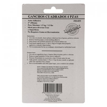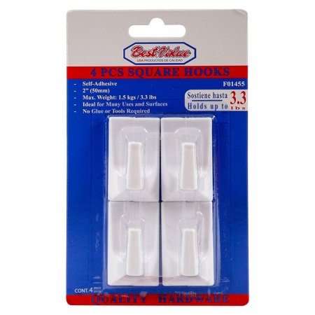 Set de 4 cuadros con ganchos elaborados en plástico, con un diseño moderno y cuadrado, ideal para cualquier hogar. Estos ganchos soportan un peso máximo de 1.5 kg y son perfectos para usar en diversas superficies. Además, no requieren goma, herramientas ni pegamento para su instalación, lo que los hace fáciles de usar y colocar. Características del producto: Set de 4 ganchos elaborados en plástico Color: Blanco Forma cuadrada Autoadhesivos Soportan un peso máximo de 1.5 kg Ideales para diversos usos y superficies No requieren goma, herramientas ni pegamento