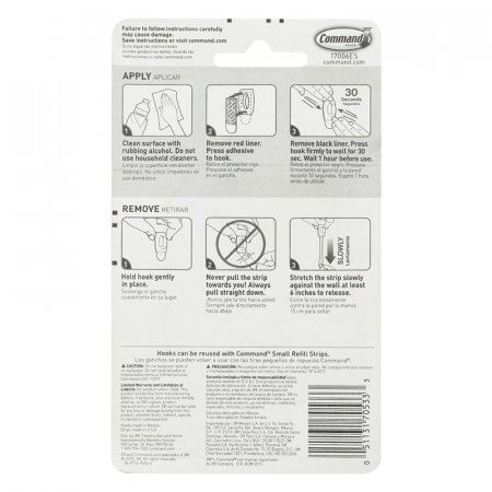 Algo indispensable para nuestro hogar es la seguridad. Por ello para ti, set de 6 ganchos command 17006, que sujetan firmemente, funcional para colgar sin dañar, además no tendrás que luchar con esos residuos que normalmente este tipo de producto deja en tu pared. Ya que no lo hace y así sea muy fácil retirarlos. Al igual que si instalación es muy sencilla ya que tiene un adhesivo muy resistente. Cada uno sujeta hasta 225g, Elaborados en plástico, de color blanco. Elaborados en Estados Unidos.
