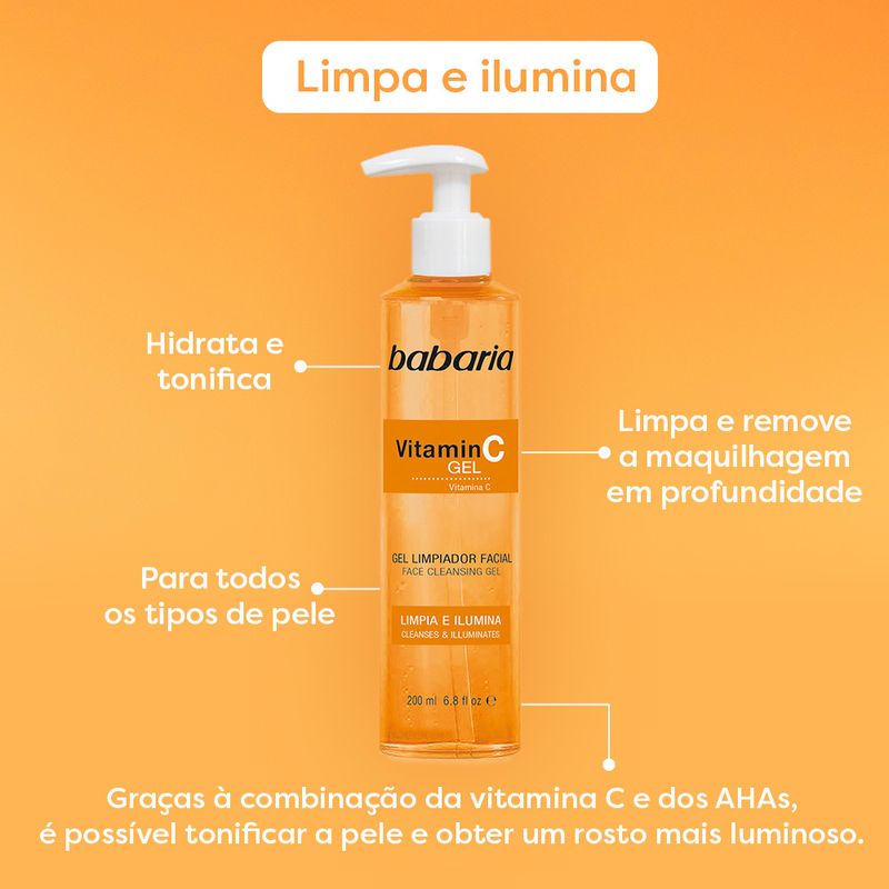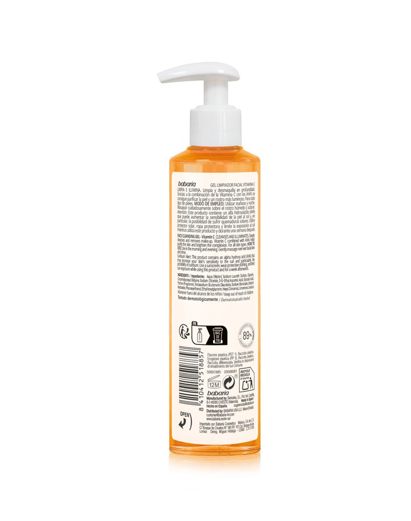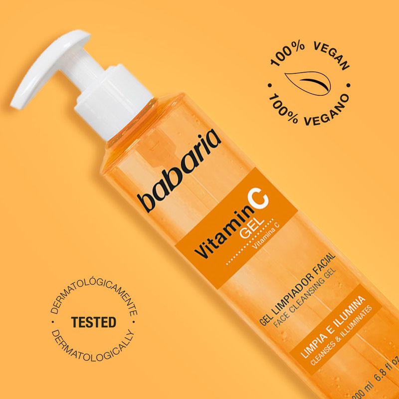 "Gel Limpiador Facial, con vitamina C. Limpia e ilumina. 100 % Vegano.