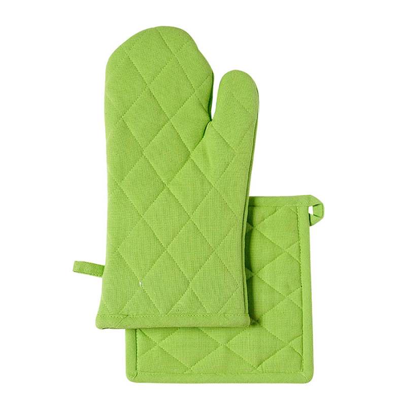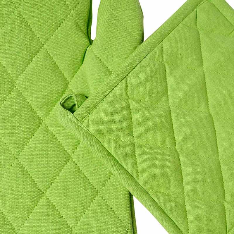 Guante y cogeolla color verde, 100% en algodón. Dimensiones: 20x20cm / 18x34cm