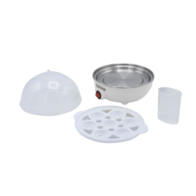 Hierve huevos en un 2x3 con un diseño compacto y funcional, solo necesitas un poco de agua para la cocción, adicionalmente tiene luz LED indicadora para el botón de encendido y apagado, es totalmente desmontable lo que facilita su limpieza, es muy fácil de usar.