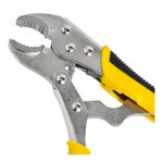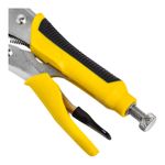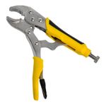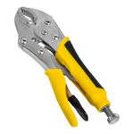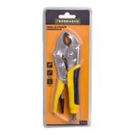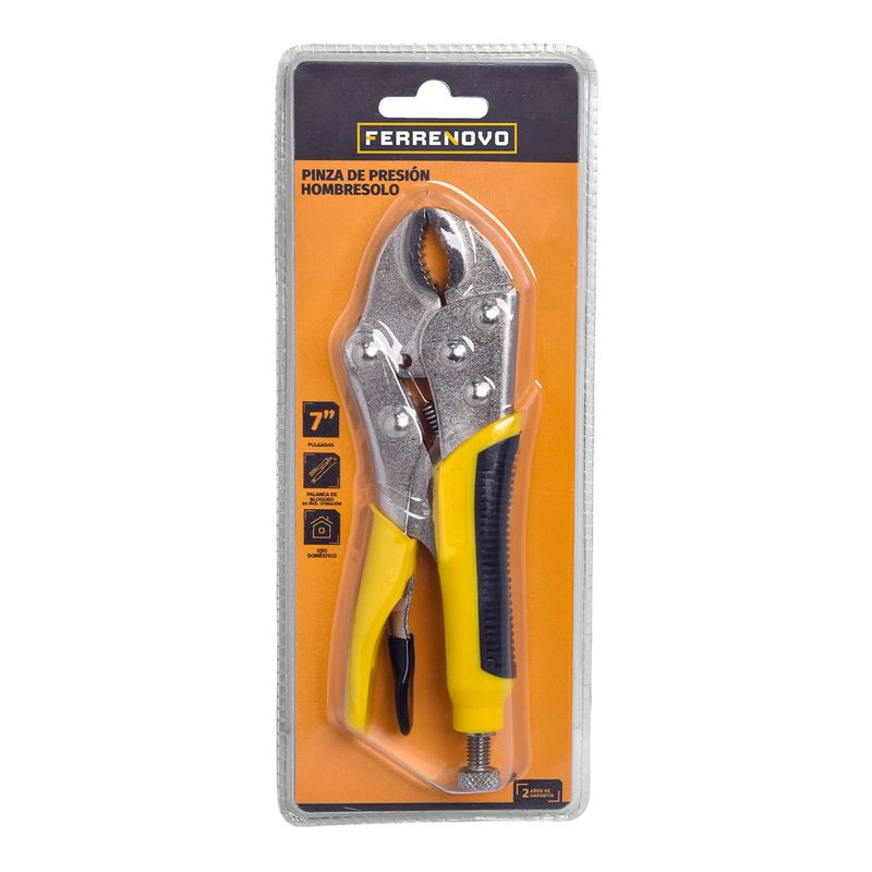 Hombre-solo de apriete estriado de 7” fabricado en cromo vanadio con acabado niquelado, ideal para uso doméstico. Cuenta con mordaza curva para un ajuste cómodo, palanca de bloqueo de fácil uso y mangos de goma amarilla que brindan un agarre firme y preciso.