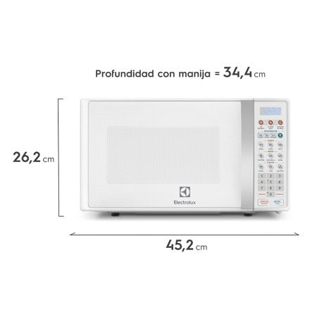 Con el Horno Microondas 17L Blanco Electrolux calienta y descongela tus recetas favoritas. Es completo y aporta aún más facilidad a tu día a día, descongela todos tus alimentos fácilmente con la Función Descongelar por tipo de Alimento. Tiene opciones funcionales que le brindan practicidad a tu vida diaria, como por ejemplo, Menú para Niños y Menú Diario, que hará que tu semana sea más práctica.