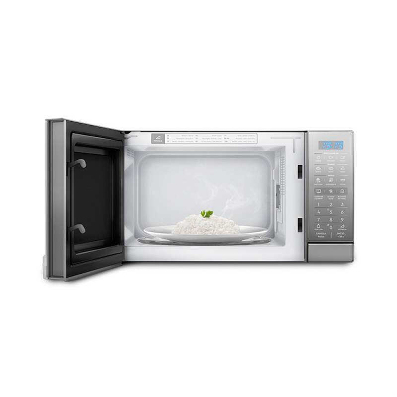 El Horno Microondas Electrolux Gris Plata De 900 W 48×28×37 Cm, 9 Niveles De Potencia Ofrece Mayor Potencia, Más Niveles De Ajuste, Funciones Adicionales Como Grill, Descongelado Automático Y Eliminación De Olores, Todo En Un Modelo De Tamaño Contenido Pero Eficiente.