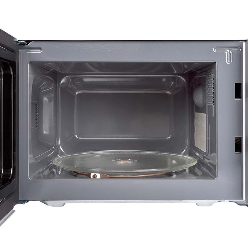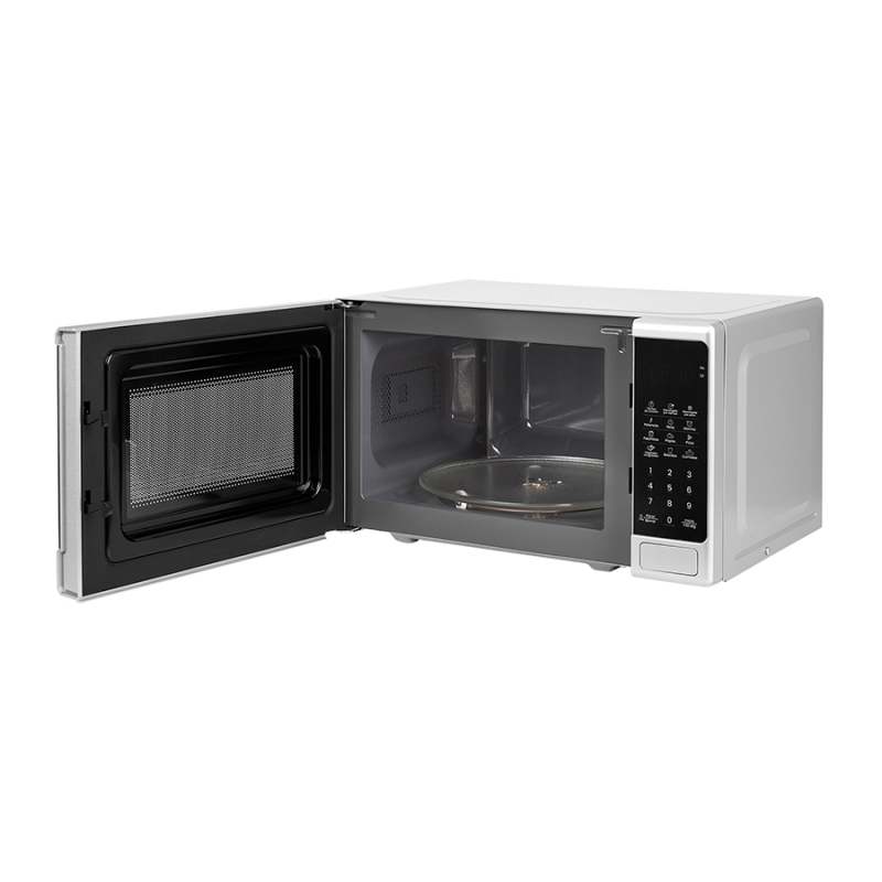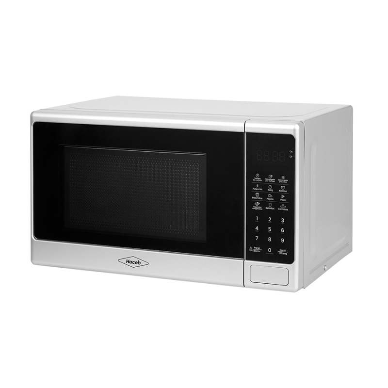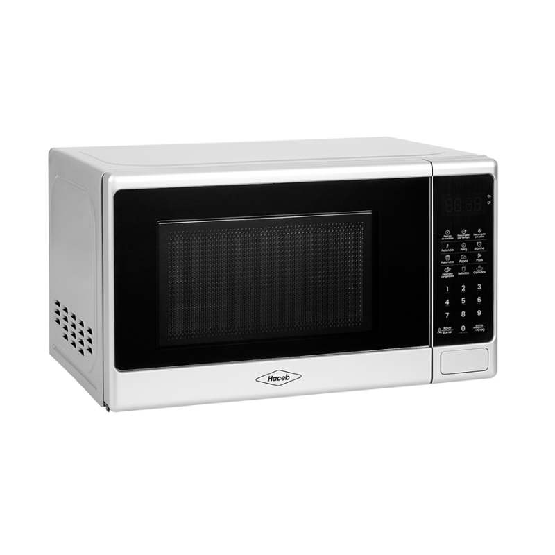 Horno Microondas Haceb plateado de 20 litros, de fácil apertura con push. Cuenta con 12 programas predeterminados, incluyendo la función memoria y función descongelar por tiempo o peso según el alimento. Ajustado a tu necesidad, capacidad de 20 litros. Ahorra tiempo: descongelado por tiempo o peso agiliza preparación. Calor uniforme: cocción eficiente y mejor resultado en tus platos. Fácil limpieza con la protección anti-salpicaduras. Sigue tus recetas fácilmente con la ventana de visualización. Por favor lea completamente estas instrucciones antes de utilizar este horno microondas, así reducirá el riesgo de quemaduras, descargas eléctricas, incendios, lesiones personales o exposición excesiva a la energía de los microondas.