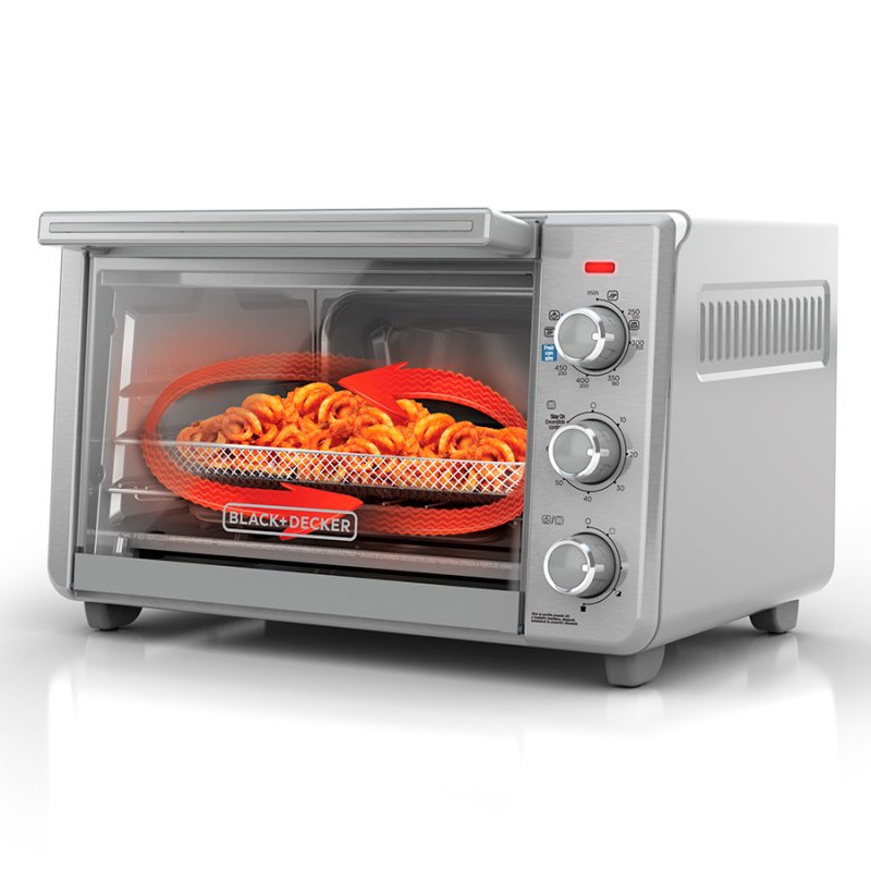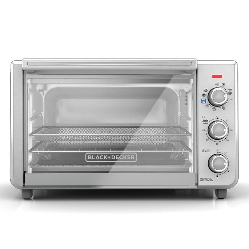 Horno de conveccion con nueva tecnología Air Fryer Disfruta de deliciosos alimentos fritos. El aire caliente proporciona una alternativa deliciosa y saludable Tecnología de Convección Rápida convección de manera uniforme El ventilador de convección se enciende y apaga para hacer circular el aire y crear una distribución óptima de calor 5 Funciones Programadas Capacidad 22 litros Freir con aire, hornear por convección, asar, tostar, mantener caliente Timer de 90 minutos Capacidad de 30cm o seis rebanadas de pan Incluye: Canasta para freír con aire, bandeja para hornear, parrilla para asar 3 posiciones de rack Bandeja para migas extraíble para una limpieza fácil. Frie y Hornea con el Horno Tostador de Black+Decker, 21.8 L , TO3217SS-LA • Horno eléctrico 2 en 1, Fríe con Aire y hornea, poderoso flujo de aire caliente, sabor frito y crujiente• Hornea una pizza de 21 cm• 5 Funciones: Freír con Aire, Hornear , Asar, Tostar y Mantener Caliente• Poderoso flujo de aire caliente para una cocción rápida y uniforme• Reloj automático de 60 minutos