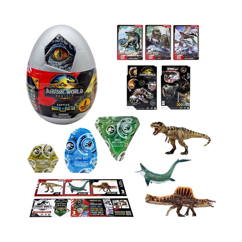 ¡Sumérgete en emocionantes aventuras con nuestra colección de Figuras de acción con el Huevo Sorpresa Dinosaurio Captivz de Jurassic world con acabados realistas. Cada huevo contiene 22 emocionantes sorpresas, perfecto para jugar y coleccionar .Ideal para niños mayores de 3 años