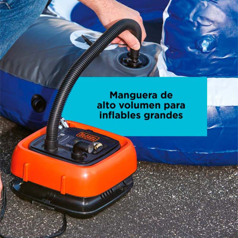 El inflador multipropósito Black + Decker 12V CC puede manejar muchas tareas de inflado. Su salida de alto volumen llena rápidamente grandes inflables como balsas y colchones de aire, mientras que la función de desinflado vacía rápidamente el aire para una limpieza rápida. La salida de alta presión funciona para inflar neumáticos o balones deportivos. Con un manómetro digital y tecnología de apagado automático, este inflador le brinda la tranquilidad de configurarlo y olvidarlo.