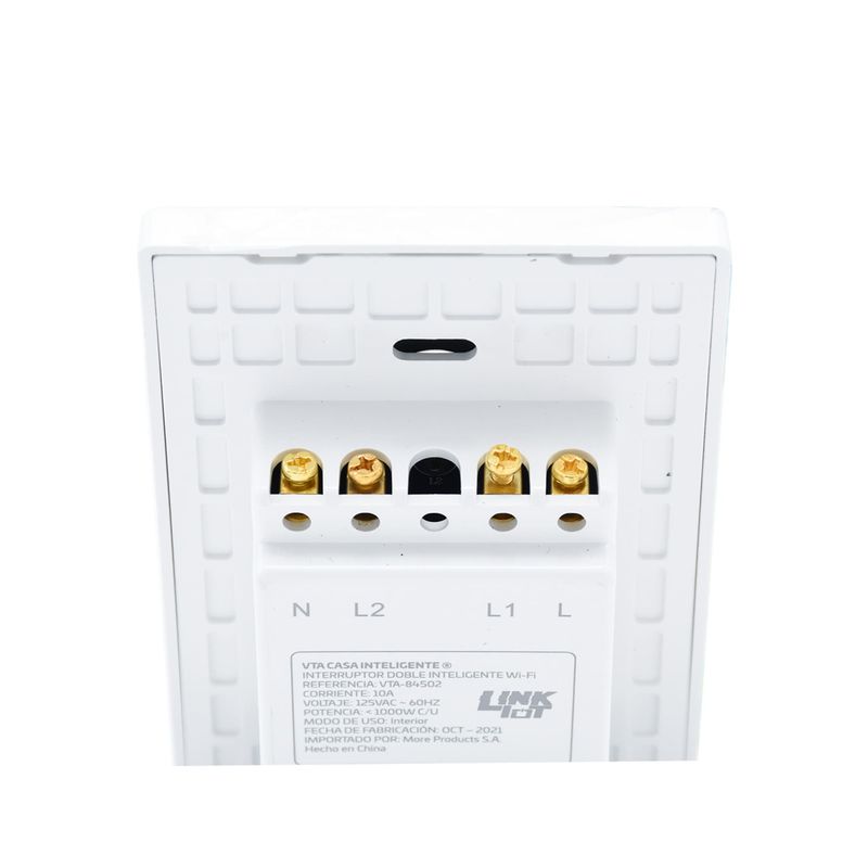 Haz que tu hogar sea inteligente controlando la iluminación de casa con solo un interruptor. Este interruptor inteligente de 2 vías te permite controlar 2 zonas de iluminación desde tu celular en cualquier lugar y en tiempo real desde la App VTA+. Diseño elegante, compacto, de empotrar a la pared. Compra 2 interruptores y automatiza la conmutabilidad, compatible con asistentes de voz Google Home y Alexa.