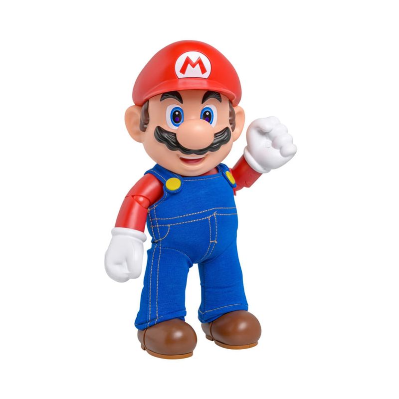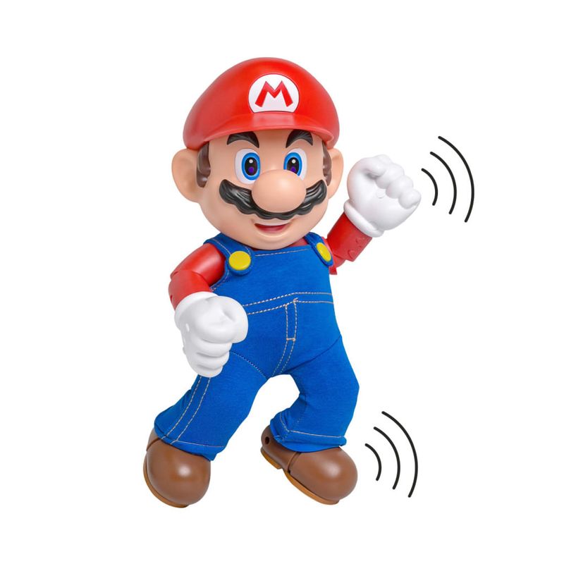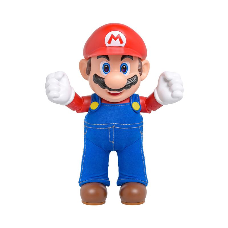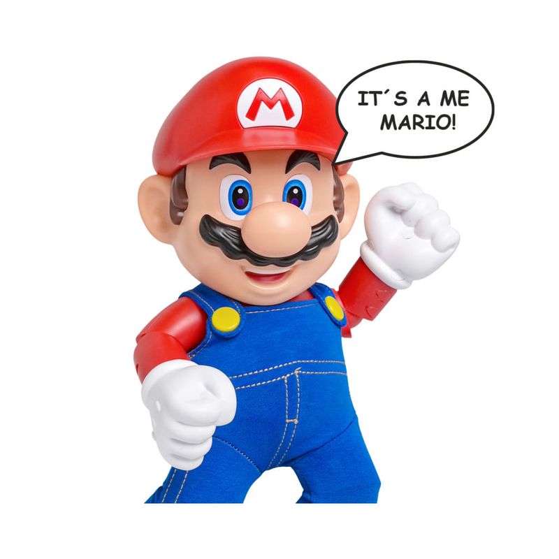 Esta figura mide 30 cm de alto fabricada en plástico resistente y viene vestida con ropa en tela de alta calidad, fiel al estilo clásico del personaje. Además, cuenta con 15 puntos de articulación para posar libremente. Incluye más de 30 efectos de sonido y frases originales de distintos videojuegos de Super Mario —con la voz oficial del personaje— y, si lo posicionas de distintas maneras, puedes desbloquear 5 canciones del juego. ¡La diversión empieza desde que dice “It’s-a me, Mario!”! Funciona con 2 pilas AA (incluidas).