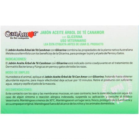 Material: árbol de aceite de té y glicerina. Línea Natural. Agradable aroma. Sólo uso veterinario. Jabón con glicerina combina las propiedades de la planta nativa australiana. Melaleuca alternifolia con beneficios de la glicerina. Protege la piel del animal. Apto para perros y gatos de todas las razas.