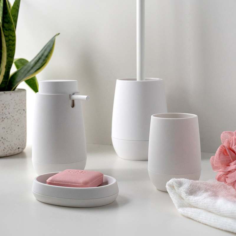 Jabonera color blanco, con diseño moderno y elegante. Dimensiones: 12.8x9.7xH.2