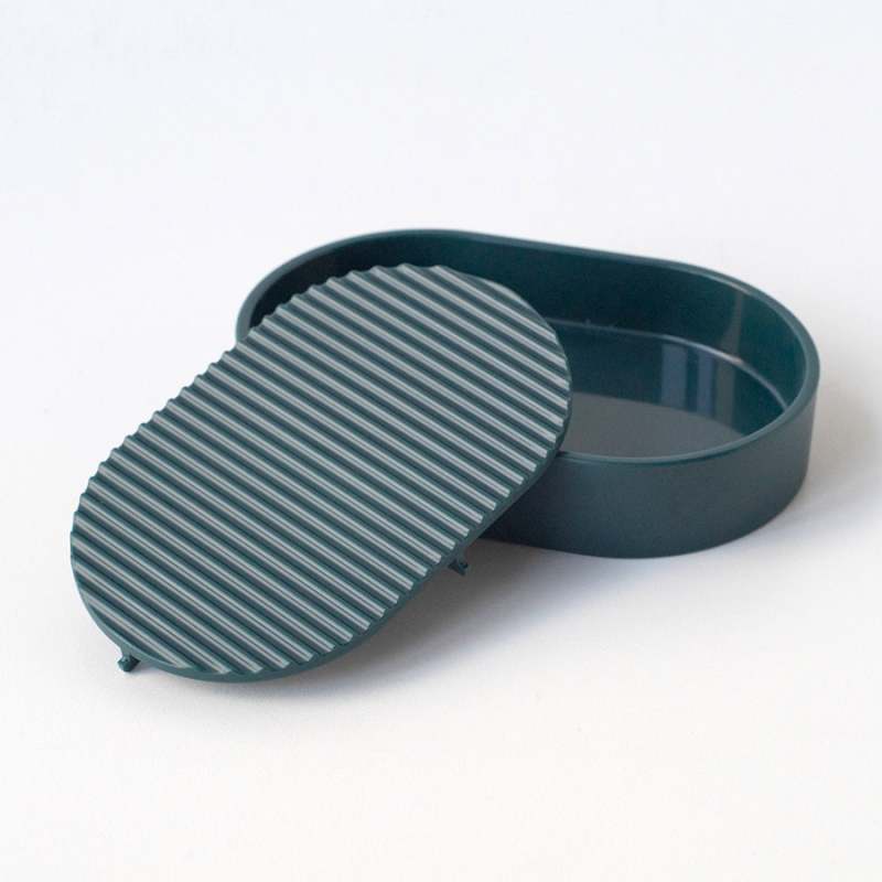 Jabonera color verde , con diseño funcional que hace que el jabón se mantenga firme por la superficie acanalada. Dimensiones: 13.6x8.9x2.6cm