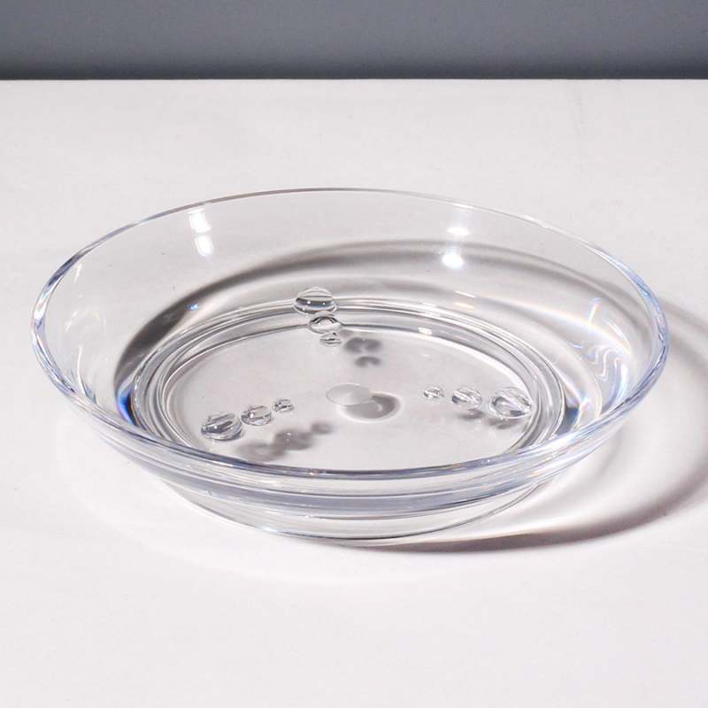 Jabonera acrilica tansparente, diseño circular con puntos en relieve.