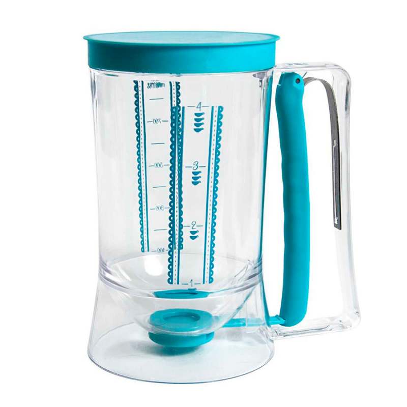 Jarra lily cook dosificadora de masa de pancake 300ml en plastico kp5115. Este vertedor de masa ultra ingenioso le permite conservar la masa de su tarta y verterla con precisión directamente sobre el molde. El recipiente está graduado para facilitar la lectura de las cantidades restantes, capacidad : 900 ml color azul rosa gris 18.5x11x17 cm 50 % plástico.
