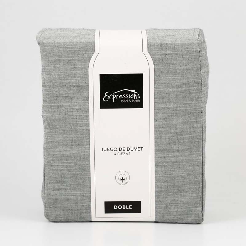 Juego de Duvet Expressions Doble 190x140 cm en color gris Oscuro, confeccionado 100% en algodón de alta calidad. Brinda suavidad y confort excepcionales para un descanso reparador. Su tamaño doble es ideal para camas medianas y aporta un toque de elegancia y frescura al dormitorio