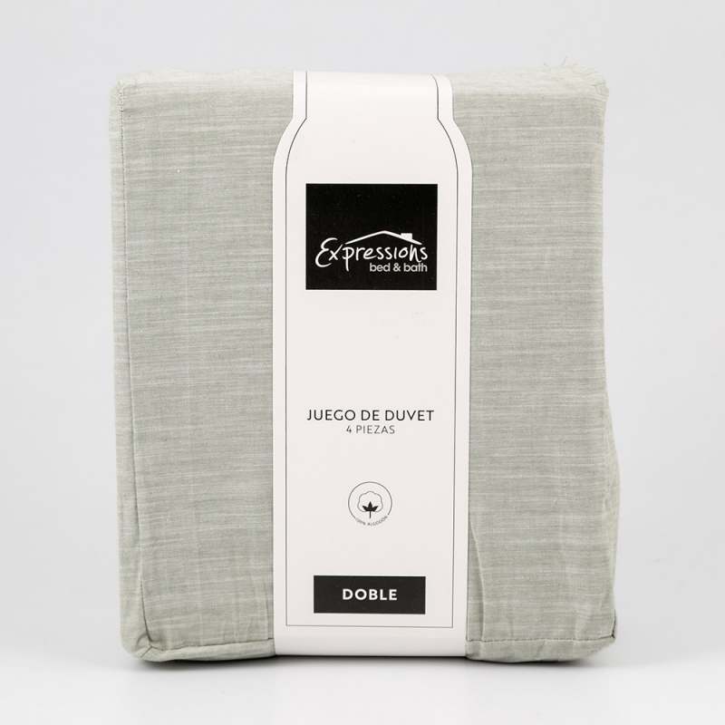 Juego de Duvet Expressions Doble 190x140 cm en color Verde, confeccionado 100% en algodón de alta calidad. Brinda suavidad y confort excepcionales para un descanso reparador. Su tamaño doble es ideal para camas medianas y aporta un toque de elegancia y frescura al dormitorio