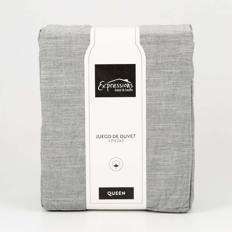 Juego de Duvet Expressions Queen 190x160 cm en color gris oscuro, confeccionado 100% en algodón de alta calidad. Ofrece suavidad y confort para un descanso óptimo. Su tamaño queen es perfecto para camas grandes, aportando elegancia y frescura al dormitorio. Producto durable y de fácil cuidado, ideal para quienes buscan calidad y estilo en textiles para el hogar.