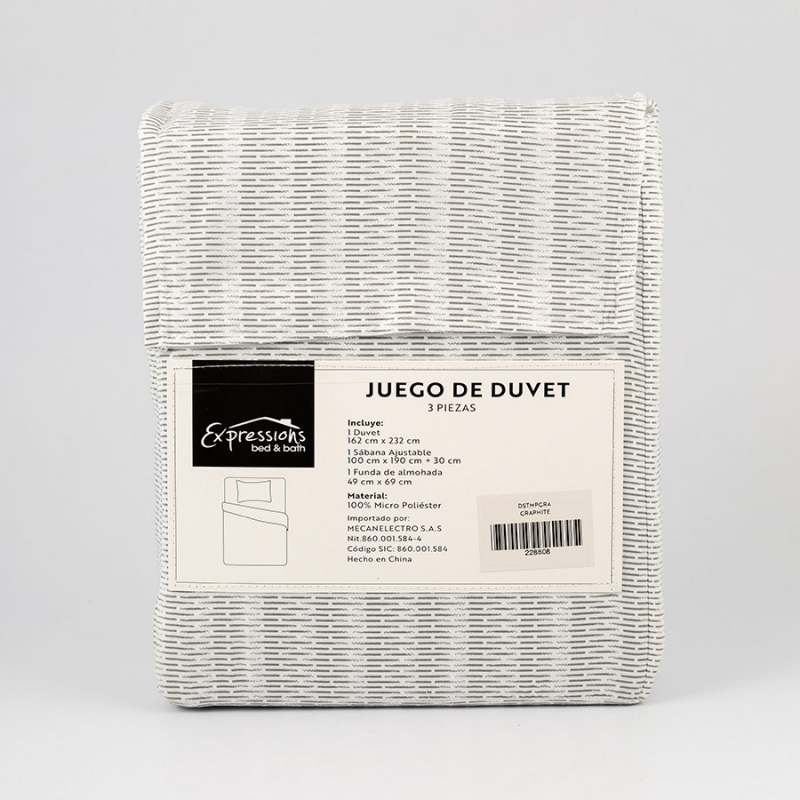 Juego de Duvet 3 Piezas Expressions gris estampado tamaño sencillo, incluye: 1 duvet cover + 1 sábana ajustable + 1 funda de almohada