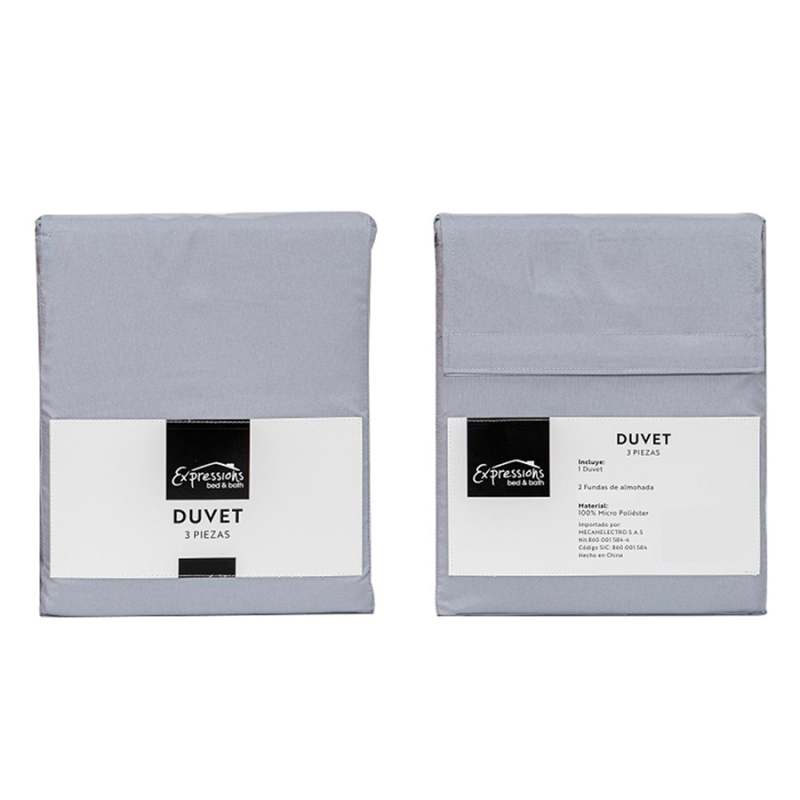 Duvet sencillo, elaborado microfribra, color gris claro, especial para decorar la cama y hacerla mas confortable, posee un tratamiento especial para suavizar la textura y evitar las arrugas, tiene alta durabilidad si se siguien al pie de la letra las instrucciones del lavado, el empaque es del mismo material del duvet.